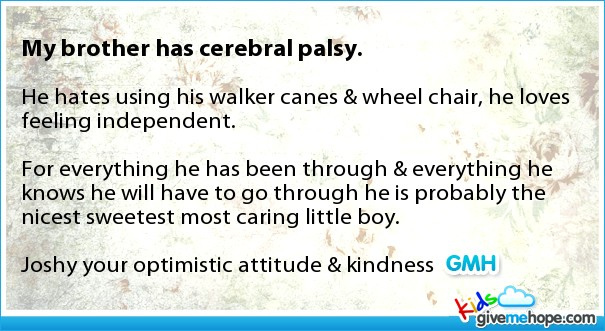 See more ideas about cerebral palsy, cerebral palsy awareness, special needs quotes. He too had cerebral palsy and was very badly afflicted. These are times when showing up for the day and having an open mind and a prayer on your breath are the best tools you have to work with.
